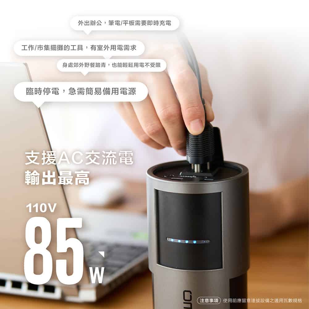 以常見設備為例,可以為手機充電約 4-5 次,支援 LED 營燈使用約 20-30 小時,或者可以讓小風扇持續運作約 8-10 小時。但實際使用時間會受到同時使用設備數量、環境溫度、電源轉換效率等因素影響,建議根據經驗預留一些餘裕。